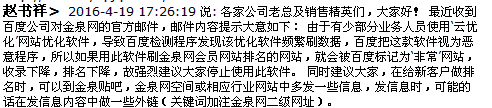 一、我们暂且不论邮件真伪,我们先看看金泉网网站的SEO状况,首先我们先打开金融网根域名jqw.com发现,该网站并没有将根域名做301重定向到www.jqw.com,这一点会导致权重不集中,较为分散网站权重。