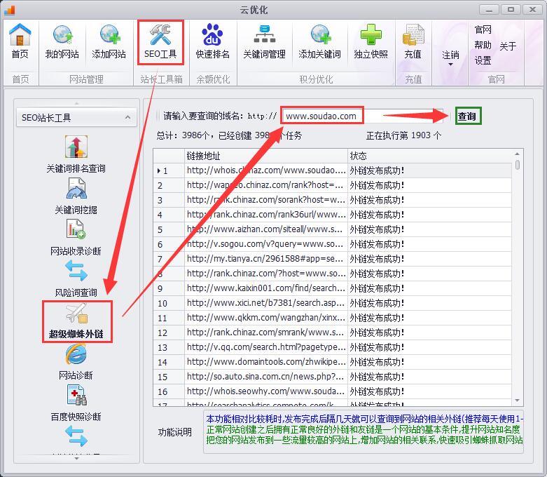 云营销软件-SEO工具-蜘蛛池链接-输入网址-提交记录