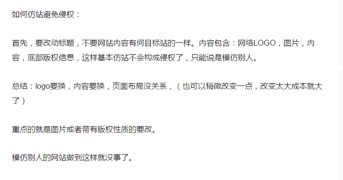 网站基本靠抄袭,美其名曰“微创新”,我又不是你爸爸,你的作品为何如此像我!很多时候你刚制作出一个有创意的网站,就会被一些不入流的工程师盯上,他们从来不去想如果提高自己的建站水平、扩展自己的创新思维,而是乐此不疲地四处找“爹”。仿站是Z便宜的定制型网站建设,也就是别人的网站制作,侵权是一种利用别人的名誉来达到自己的盈利目的的非法活动。中国互联网竞争的大环境十分恶劣、复杂,充斥着抄袭和造假,甚至连BAT的寡头都不免入俗。中国的互联网行业正在高速发展,只有净化网络环境、加强互联网监管、提升侵权违法成本,才能让那些优秀的互联网工程师脱颖而出,才能让网络公司更加专注创新开发而不是模仿抄袭,只有这样中国才能成为真正的互联网强国。