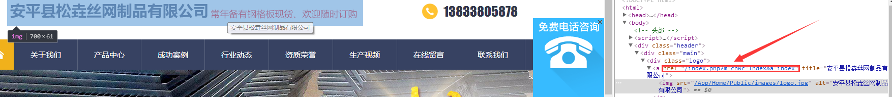 网站头部logo里面包含了一个链接虽然点击是首页的但是网址却不是,这个地方为了不造成影响我们将这个链接修改为正确的网址即可