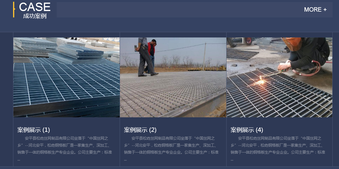 描述:安平县松垚丝网制品有限公司坐落于“中国丝网之乡”河北安平,松垚钢格板厂是一家集生产、深加工、销售于一体的钢格板生产企业。公司主要生产:镀锌沟盖板、钢格栅板、标准压焊钢格板、钢格围栏、水沟盖板、复合钢格板、楼梯踏步板等多种钢格栅板产品,竭诚为广大新老客户服务与合作。